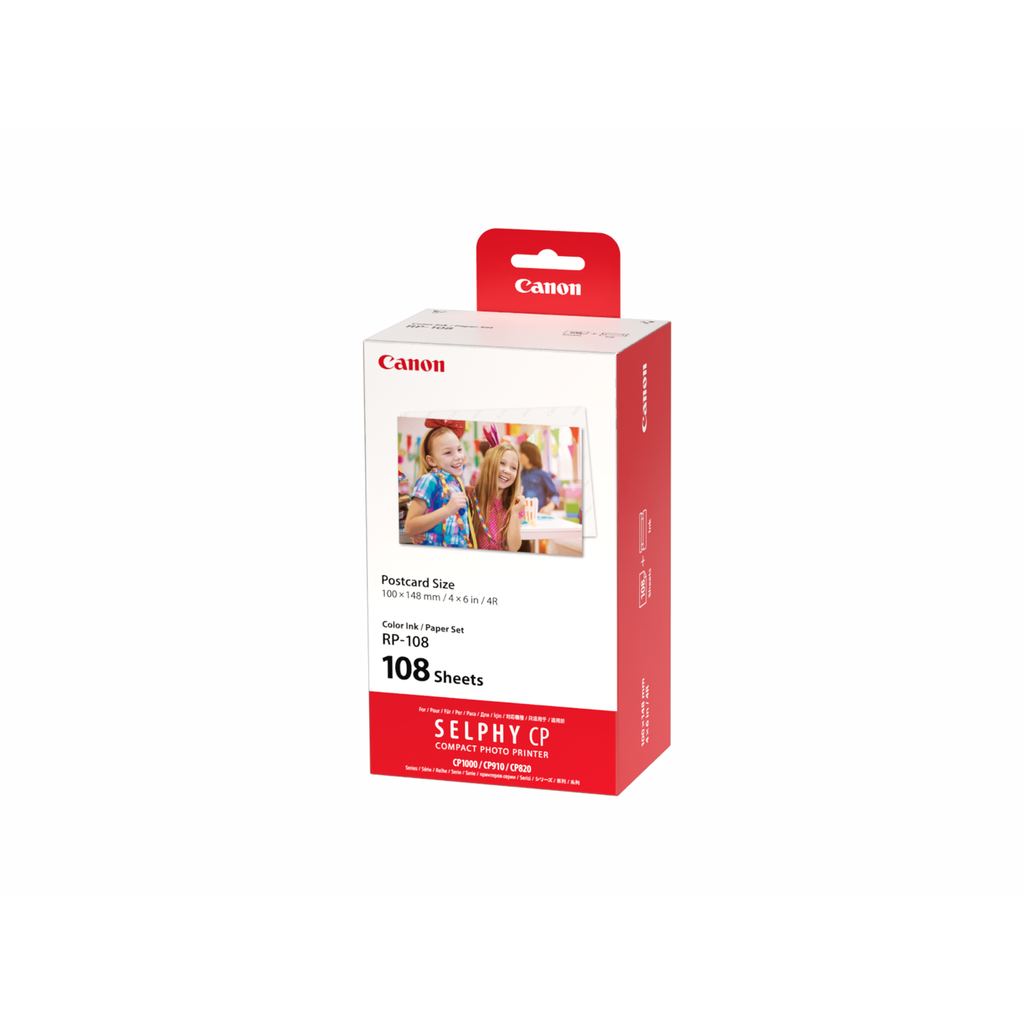 Bulk Printing Made Easy: 108 High-Quality Postcard Prints Keep the memories flowing with the Canon RP-108 High-Capacity Color Ink and Paper Set. Designed specifically for the SELPHY CP series, this all-in-one bundle provides everything you need to produce 108 professional-grade 4 X 6" photos.