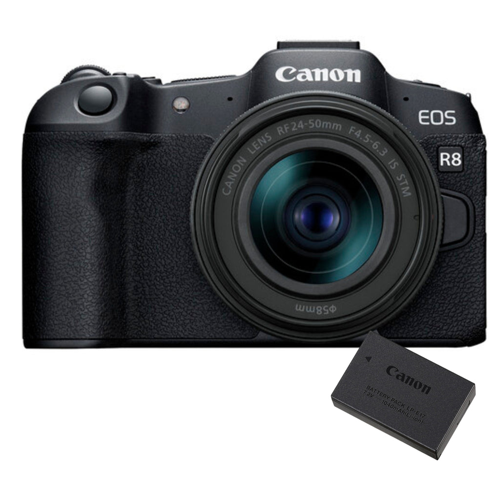 Pairing the well-rounded camera with a versatile zoom, the Canon EOS R8 Mirrorless Camera with RF 24-50mm f/4.5-6.3 IS STM Lens combines the full-frame mirrorless body with the RF 24-50mm f/4.5-6.3 IS STM zoom lens.