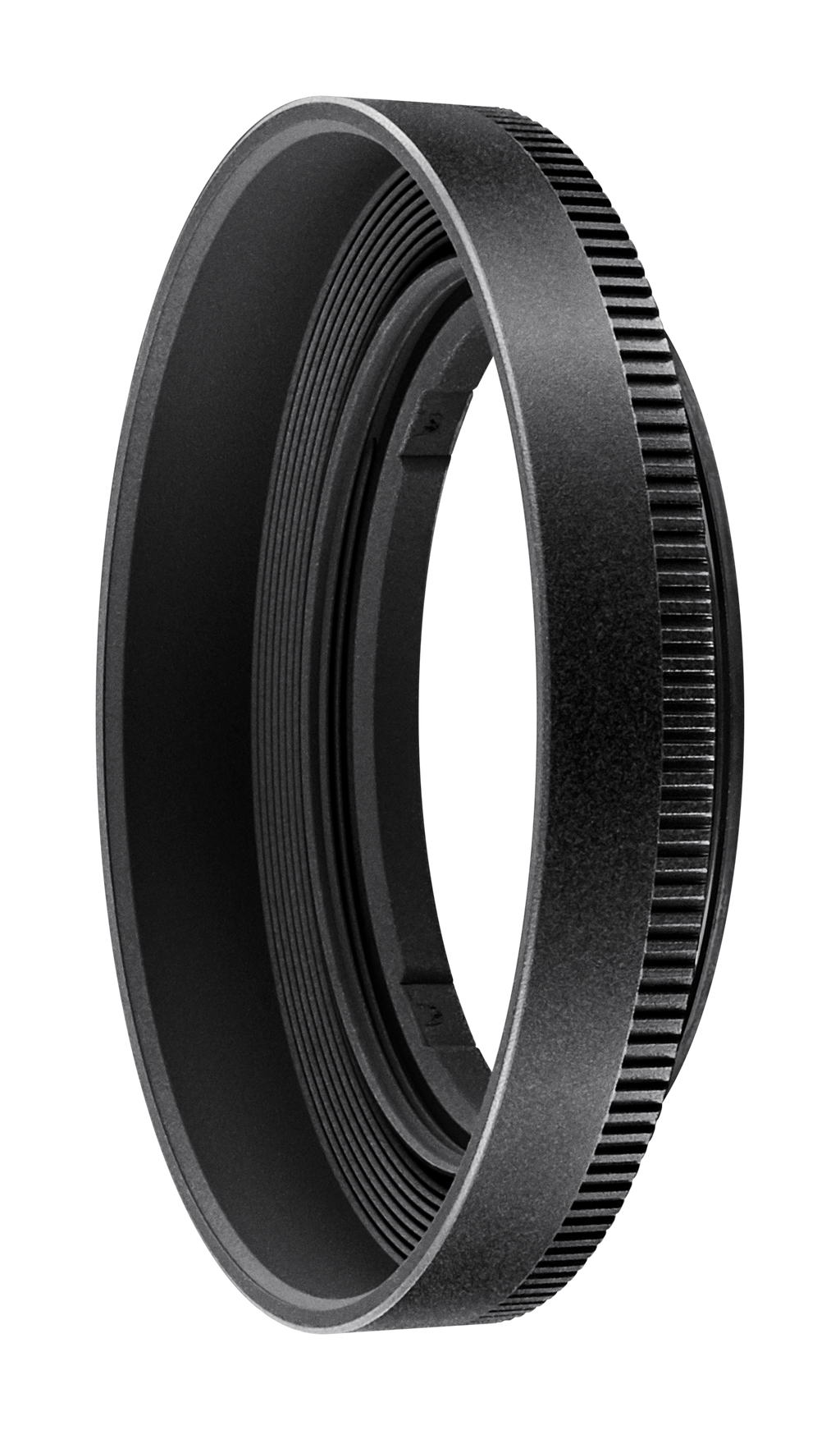 The Nikon HN-43 Screw-On Lens Hood is designed for the NIKKOR Z DX 35mm f/1.7 lens. It helps reduce lens flare and protects the front element from bumps and scratches.