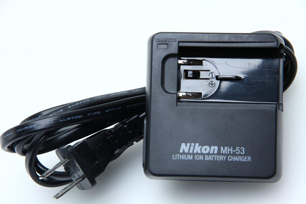 Used Nikon MH-53 battery charger for EN-EL1 rechargeable batteries. Fully tested and in great working condition. Compatible with a wide range of Nikon Coolpix cameras including 775, 885, 995, 4300, 4500, 4800, 5000, 5400, 5700, and 8700. Compact and reliable for everyday use or travel.