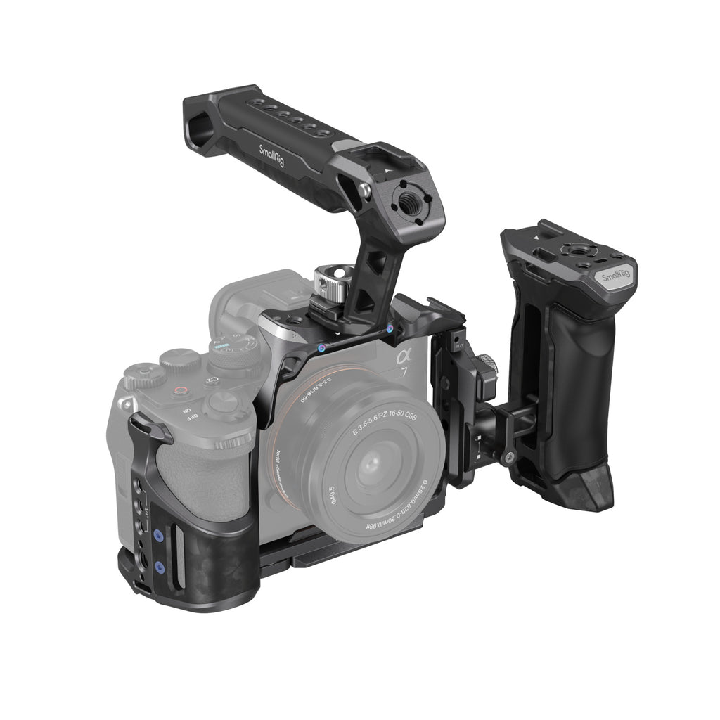 The SmallRig "Rhinoceros" Advanced Cage Kit (3710) is a premium, lightweight rigging solution designed for professional cinematographers using Sony’s Alpha series. This kit stands out by utilizing high-strength carbon fiber components, making the entire setup more corrosion-resistant and significantly lighter than traditional aluminum rigs—perfect for long days of handheld shooting.